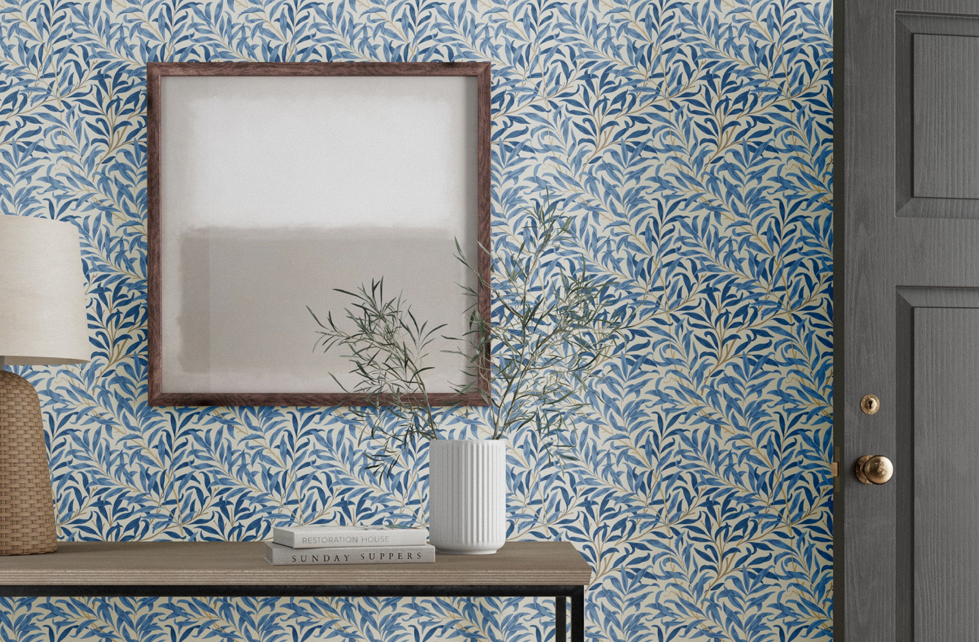 One of William Morris's most recognisable patterns, Willow Bough features entwining stems and delicate willow leaves.