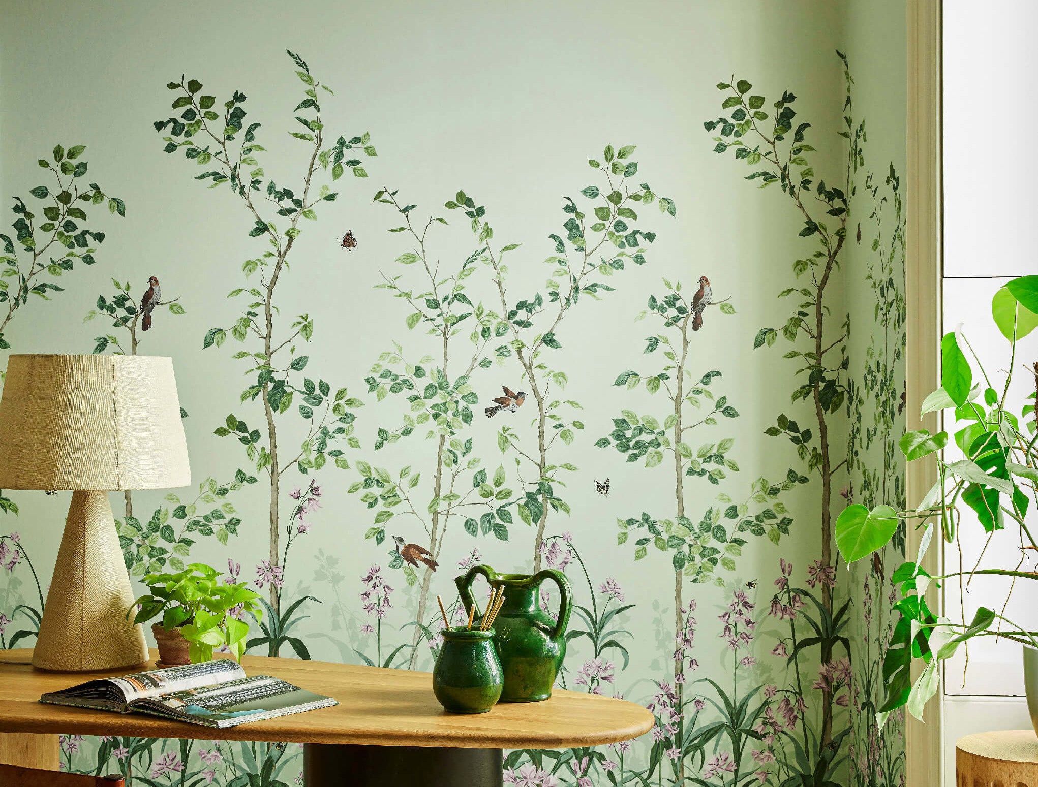 The National Trust Papers III comprises 45 colourways representing over 200 years. The collection features hand painted birds, florals and scrolling trails.