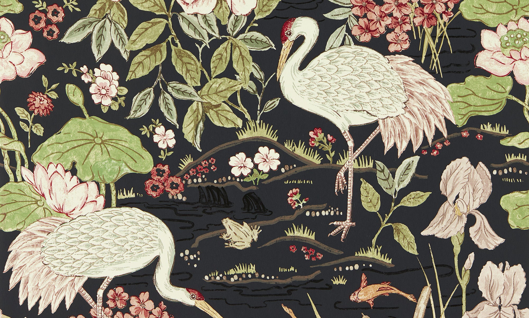 Description: An intricate design featuring Emperor ducks, koi carp and characterful frogs intertwined with reeds, irises and roses. The Sanderson design studio was inspired by beautiful, printed silk that was especially in vogue in the 1930s. Available in a range of colourways that take influence from the vintage silks.