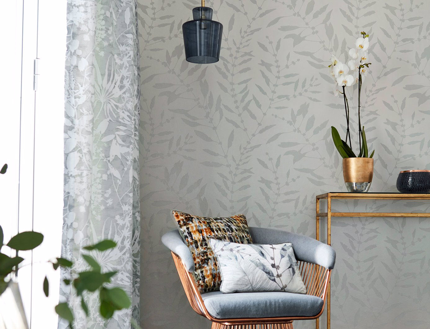 Beautiful shimmering sea plants float across the wall in this ethereal wallpaper by Harlequin, available in two neutral colourways.