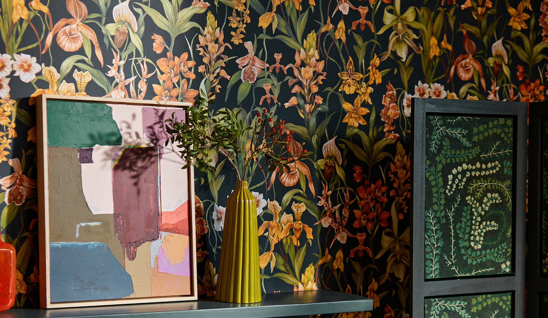 Description: Hand drawn botanicals fill this wallpaper and create a tranquil scene. The intricate details of the flowers, stems and leaves pop and come alive against the plain matt background.