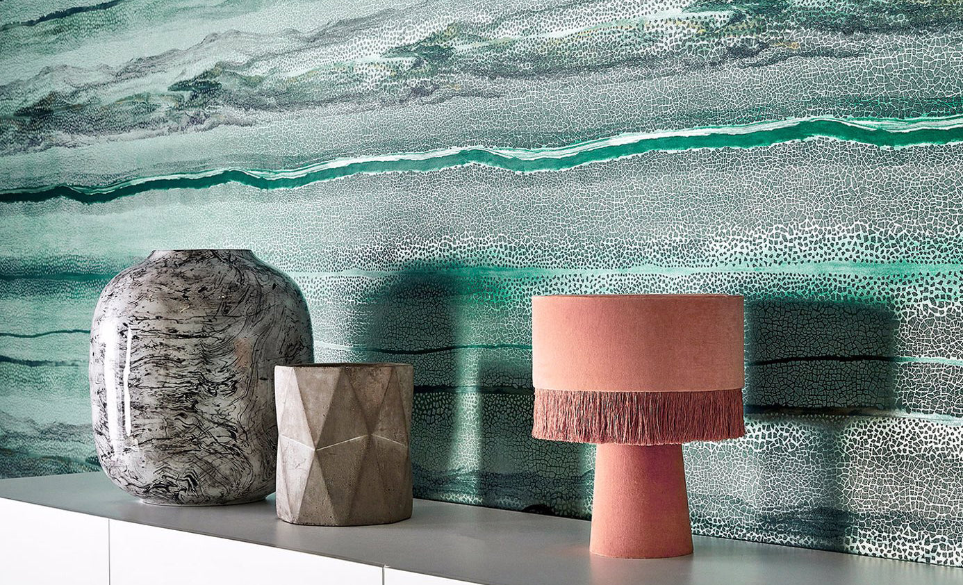 Vitruvius wallpaper features flowing stripes of colour inspired by the textures and markings of cut marble.