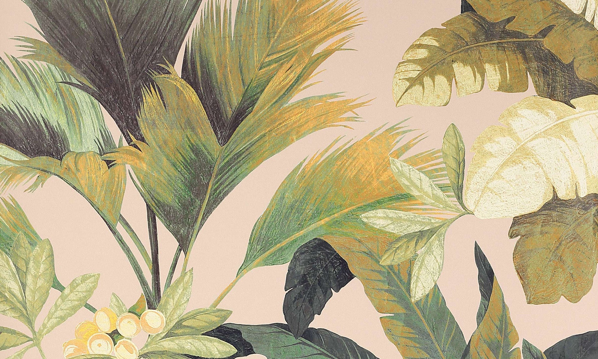 Description: a sophisticated large-scale tropical print that will transport you to a luxuriant palm grove. A classic option to the more trend-led tropical trend this pictorial representation has been created in ink wash and pastel. Available in 4 contemporary colourways that will sit easily in a modern home.