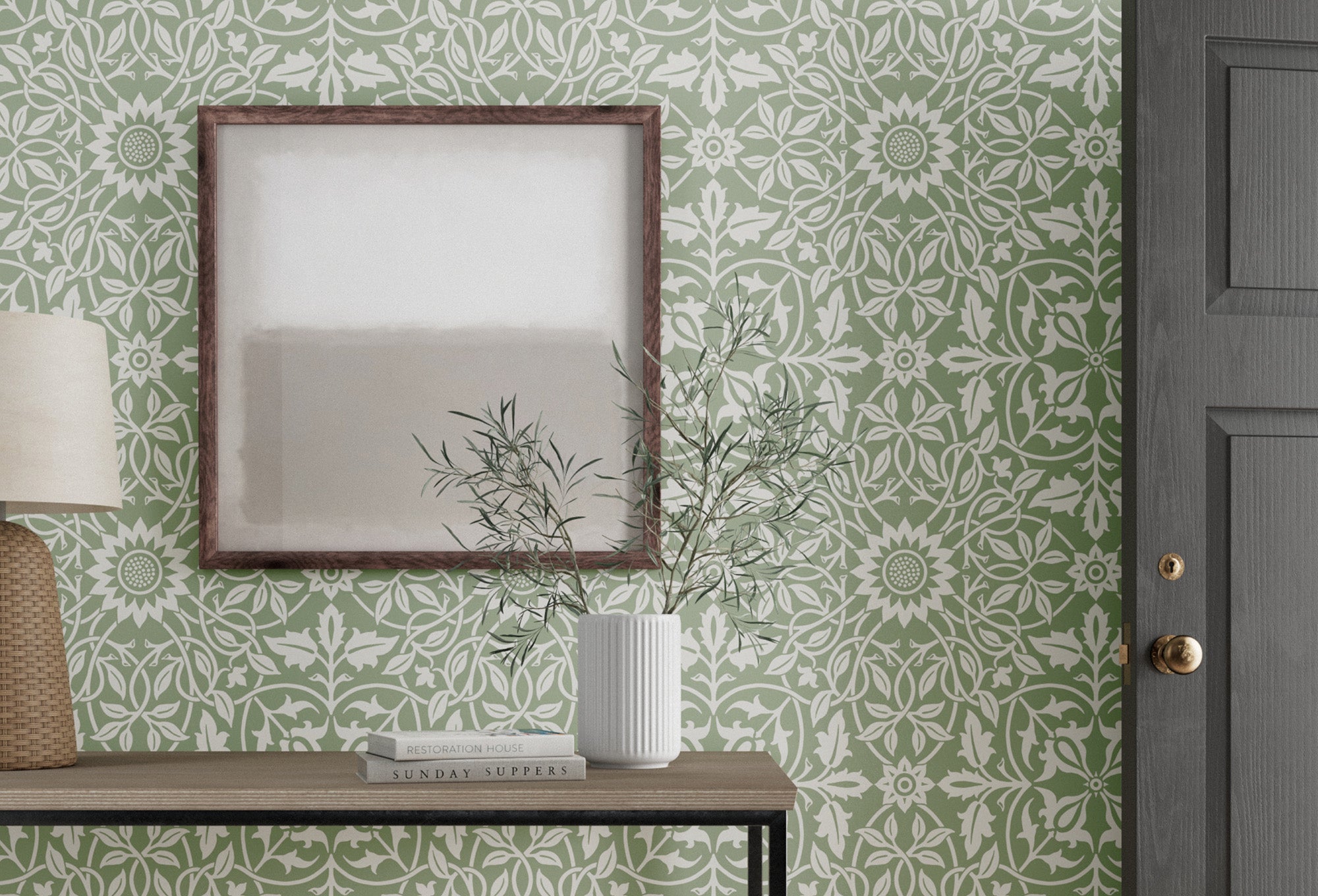 Description: A beautiful multi-directional wallpaper is available in refreshing colourways for the Simply Wallpaper collection. Originally designed by William Morris as part of a commission of the redecoration of the Grand Staircase in St James's Palace, London. Surface printed to ensure it retains a beautiful opaque chalky finish.