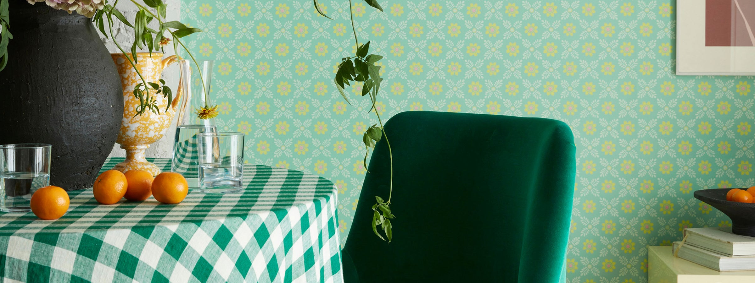 Vintage looking, this wallpaper is available in six colorways from vibrant green to subtle earthy tones.