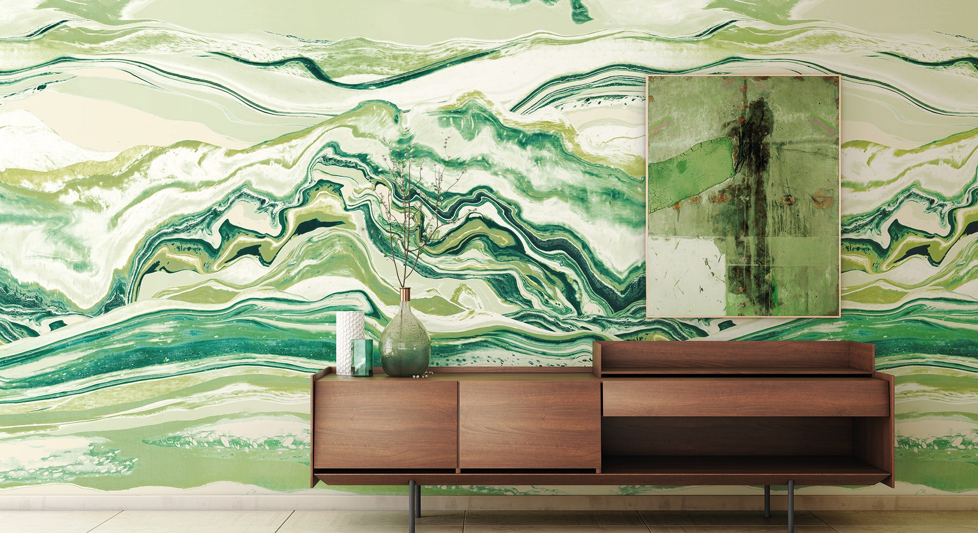 Description: A painterly design of a free-flowing landscape that twists and flows across the wall. The beautiful markings and abstract feel make this a contemporary choice.