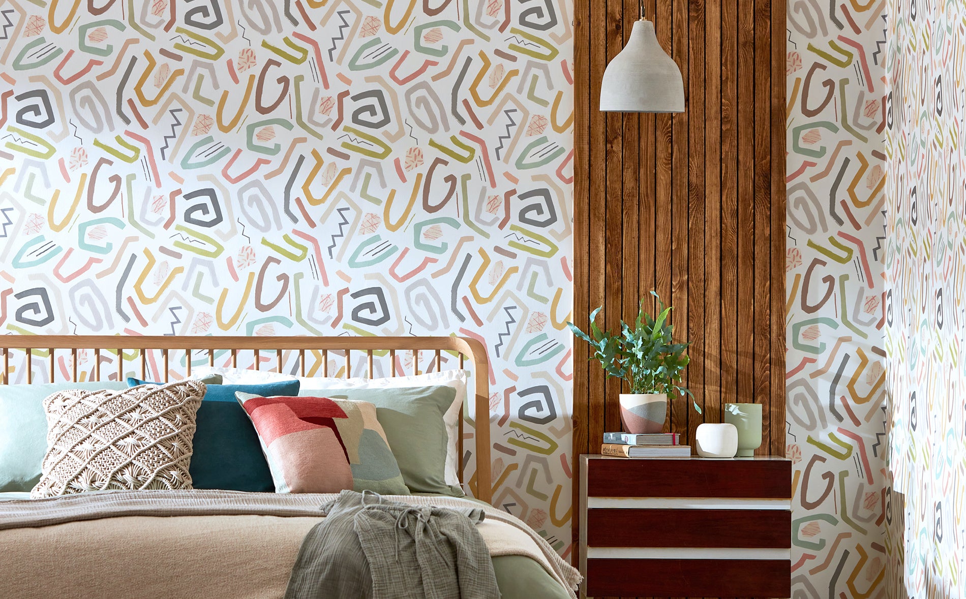 OHPOPSI Squiggle Wallpaper in a bedroom