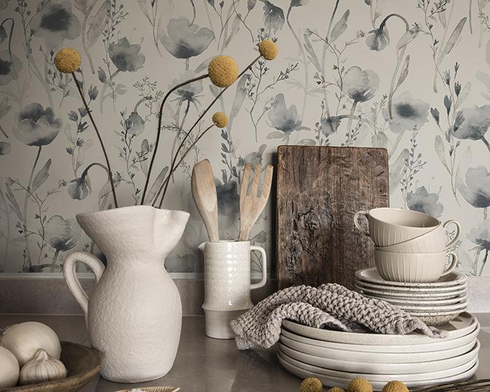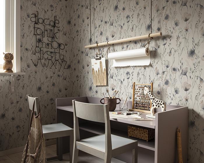 Their designs often pay homage to historical and cultural heritage, creating a range of contemporary premium wallpapers in Scandinavian style. If you’re looking for a feature or statement wallpaper, then look no further than the Special Edition collection. Let your imagination be captured by wintry forests and colourful treetops that will add originality to your home. A range of wallpapers that will add that little extra something to your room. Or, if you’re looking for that perfect nursery or children’s room wallpaper, we recommend the Kubel Kids collection. It’s that perfect mix of dreamy patterns in subtle colours, great for all ages. A highlight of the collection is the Moraongen wallpaper, a beautiful mural of pretty watercolour meadow flowers.