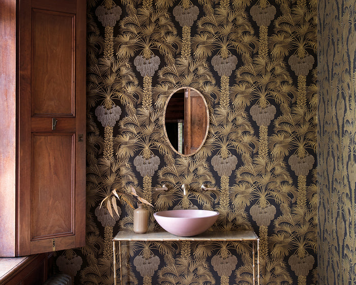 Description: Hollywood Palm wallpaper by Cole & Son features a deco palm tree motif. This tropical wallpaper is a celebration of Martyn's LA influences.