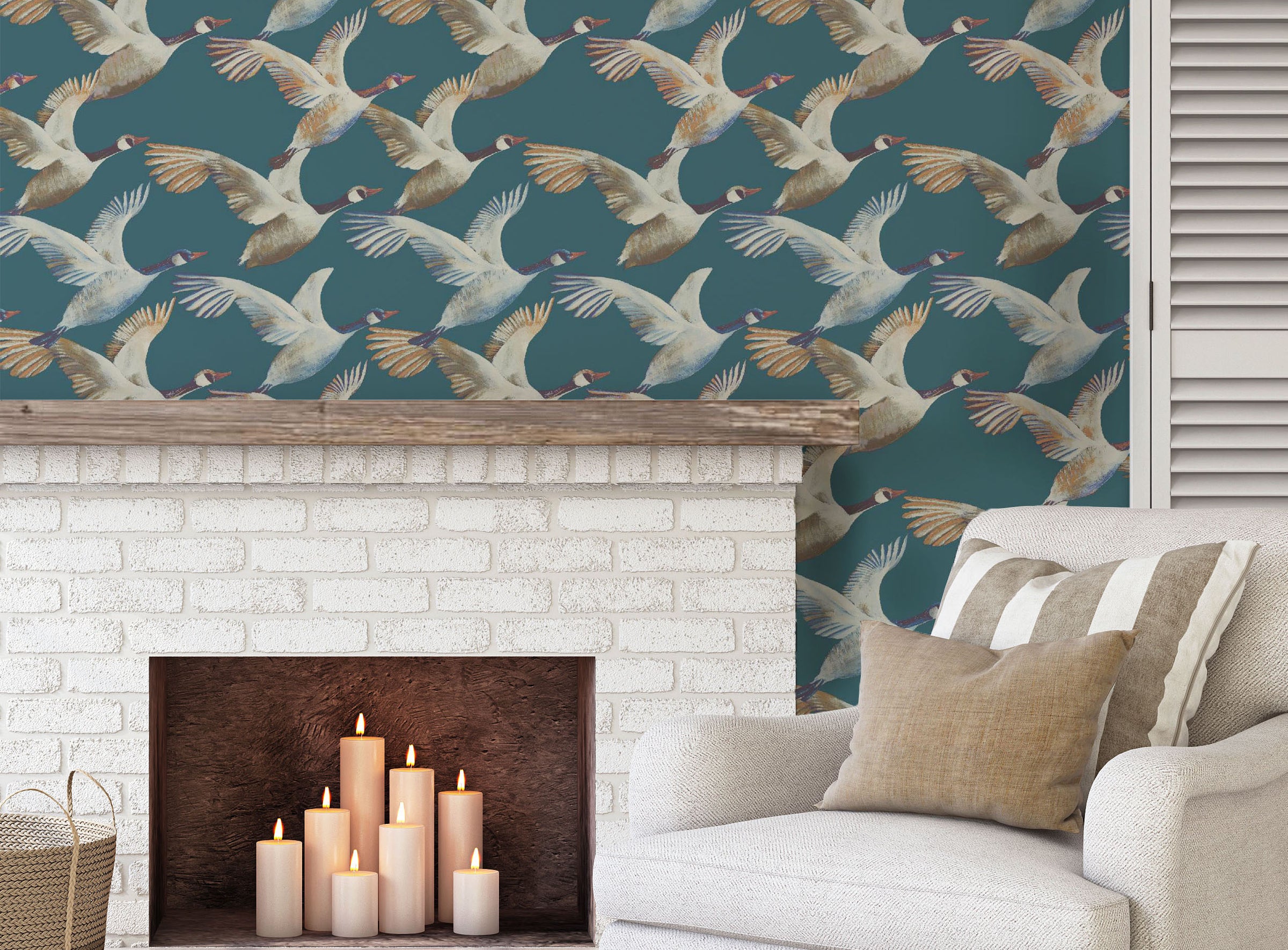 A quintessentially English wallpaper design that features a flock of synchronised birds. The designers at Arley House have hand painted this design which gives a calming decadence. Ideal for a cosy cottage sitting room or traditional study.