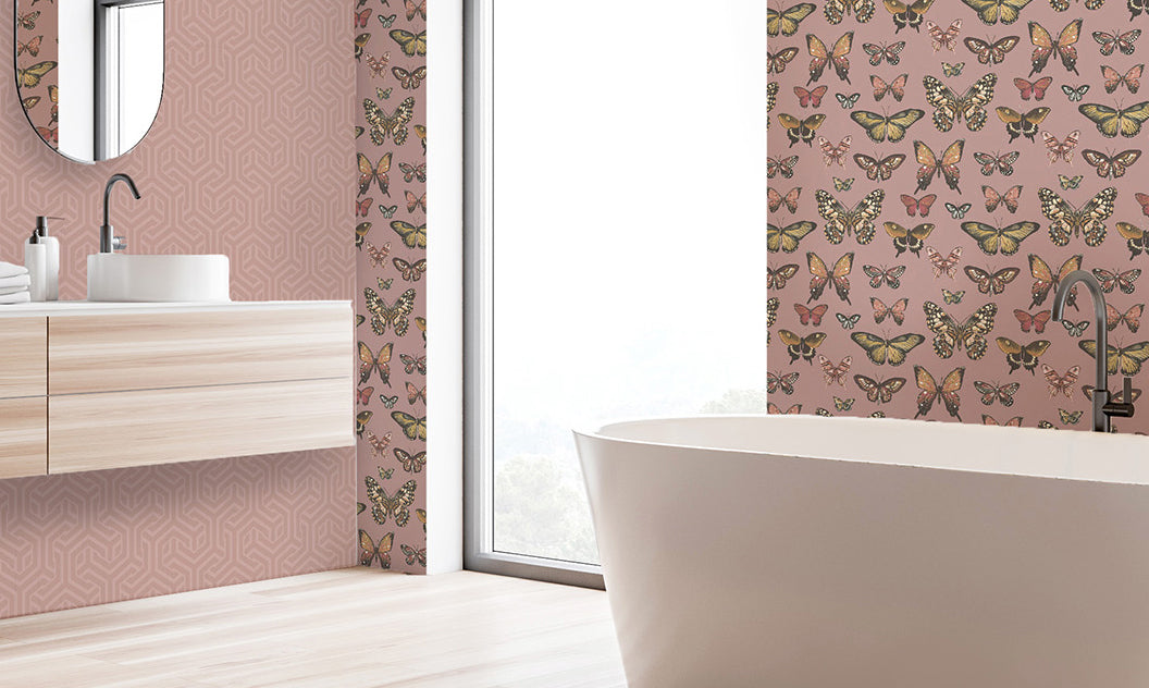 A hand painted wallpaper design of beautiful, intricate, butterflies that will adorn your walls. Add an element of the natural world to your home, pair with Opus for a contemporary look.