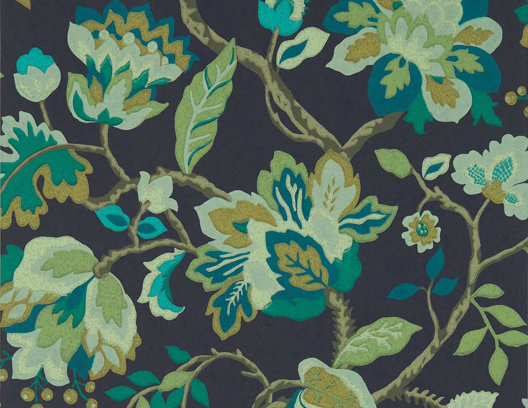 Description: Amanpuri wallpaper from Sanderson's One Sixty collection has been redrawn from a typical 1920s interpretation of Jacobean embroidery. This stylish wallpaper shows a trail of leaves and flowers and has been engraved to capture the inky richness of its block print texture. This vintage-inspired collection celebrates 160 years of Sanderson design. Available in three colourways: Salmon/Dove Blue, Midnight/Eucalyptus and Grey Mist. Show here in Grey/Mist.