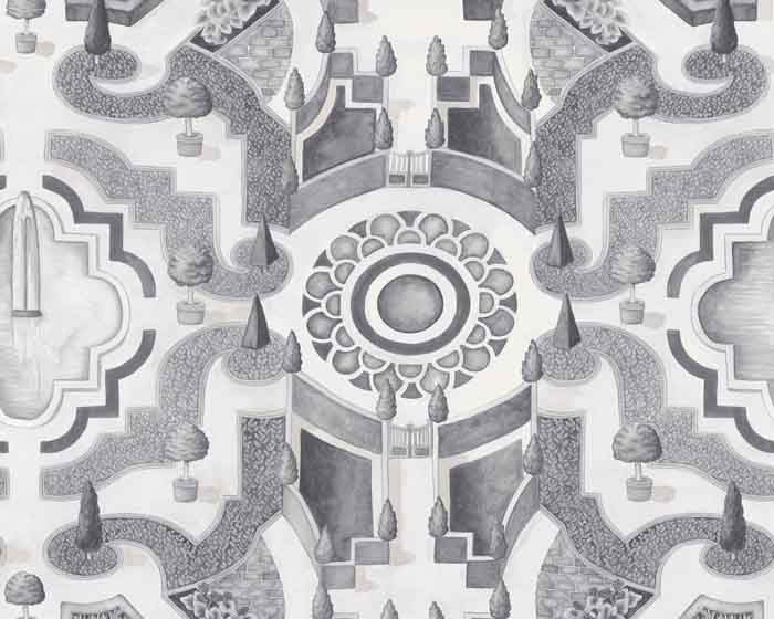 Description: Topiary wallpaper by Cole & Son features a bold geometric design of a manicured topiary garden with beautiful ornate spaces.